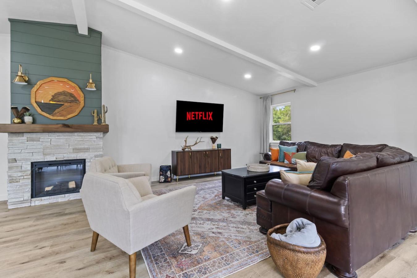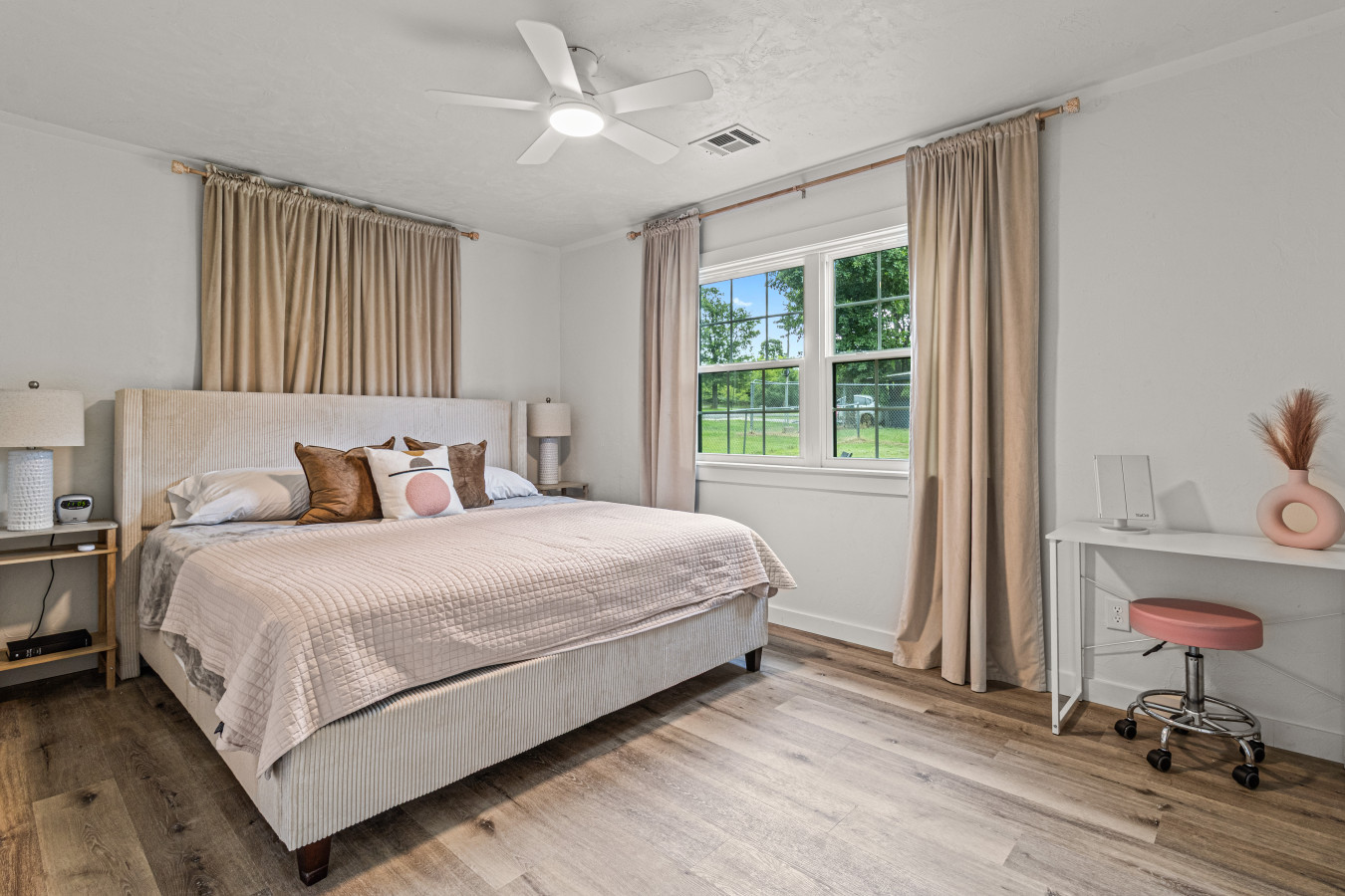Welcome to Casa Verde – a high-end, newly renovated home with partial lake views and stylish touches throughout. This fully furnished retreat features 3 bedrooms, 1.5 baths, and sleeps 6 comfortably. The spacious open-concept living area includes a cozy electric fireplace and large smart TV, perfect for relaxing after a day at the lake. Conveniently located near Eufaula and Nichols Point, it’s stocked with all the essentials for your perfect getaway. Guests will have full access to the entire home, except for a locked cleaning closet and the detached garage. Casa Verde is your private retreat near Eufaula and Nichols Point—relax, unwind, and enjoy all the comforts of this beautifully updated getaway. We give guests their space but are always just a message or phone call away if you need anything during your stay. We're happy to offer recommendations or help with any questions that come up. There is parking available for up to 4 vehicles. Please note that a boat or trailer counts as one vehicle toward the total.