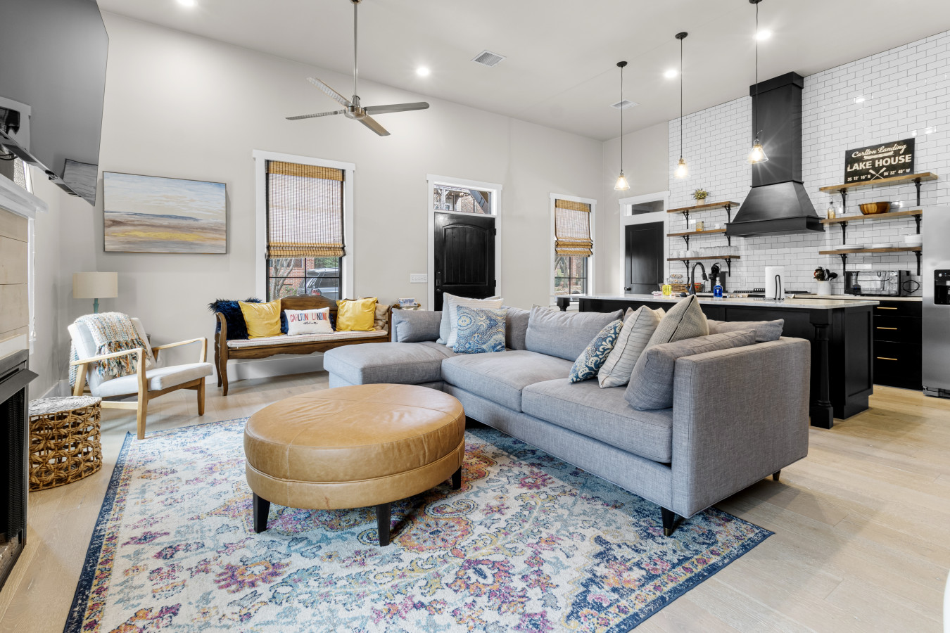 This stylish 3 bed, 2.5 bath home sits on Park Street in the heart of walkable Carlton Landing. Enjoy a fully stocked kitchen and spacious seating perfect for family meals or gathering with friends. The luxurious primary bathroom features a large soaker tub and relaxing steam shower. Take in neighborhood views from the second-story balcony or unwind with a book in the cozy screened-in porch. The fenced backyard adds privacy and convenience for kids to play or for enjoying outdoor time. Guests can enjoy full access to the entire house, including all living spaces and outdoor areas. A few closets will be locked for owner storage and are not available for guest use. Guests will be provided with easy, hassle-free self-check-in instructions as well as 24/7 support via phone, text, or messaging within our app. Whether you’re new to the area or just need help navigating our check-in process, we are here to help make your stay enjoyable and memorable! ****Please note: some amenities are seasonal, and availability is managed by Carlton Landing. We are not responsible for closures or schedule changes.**** 🌿 Nature & Lake Disclaimer Please note that you are visiting a lake and wooded area, surrounded by water and trees. While our homes receive routine professional pest control, it’s possible you may still see some exterior insects or spiders during your stay. This is a natural part of the lake environment, and we do our best to minimize their presence both inside and outside the home. Thank you for understanding and enjoying all that nature has to offer at the lake! 🌊🌳