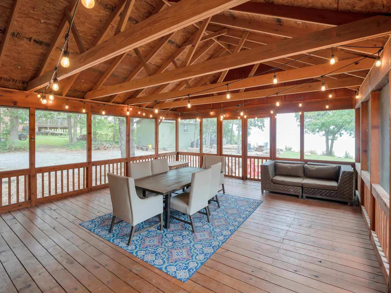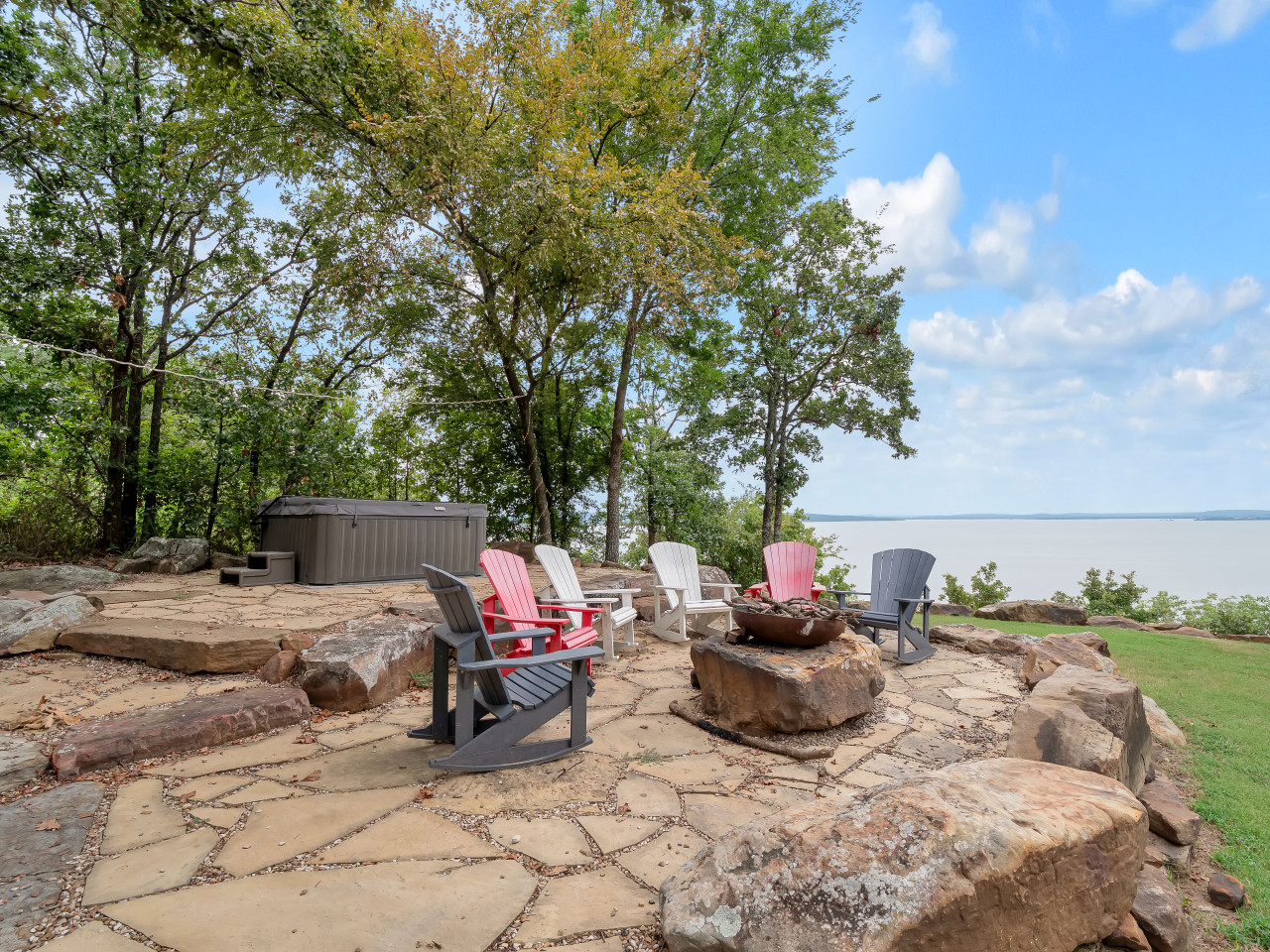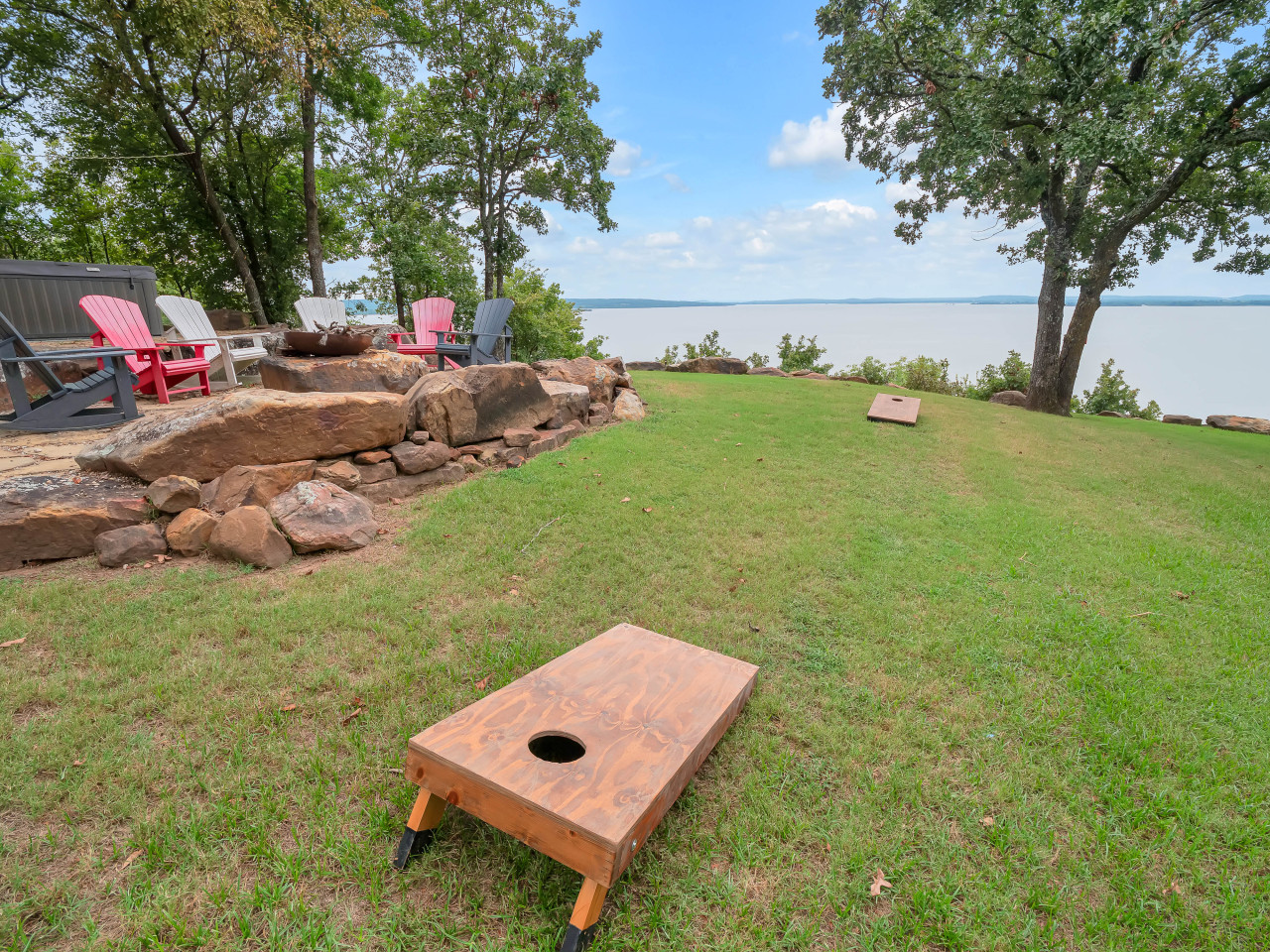 Welcome to The Jewell of Eufaula, a log cabin with a private view of lake Eufaula from the backyard. This is the perfect place to relax and unwind with family and friends. We are 1/2 mile from the nearest boat ramp. We have a pellet grill, lawn games, fire pit, ping pong table, and a jacuzzi hot tub! We also have WiFi, smart TV, card games, a pack n play, and everything else you need for a great stay! The exclusive backyard view is truly quite a JEWELL! Living room/kitchen- Open concept with seating area. The kitchen is well equipped with cookware, bakeware, utensils, full set of dishes, kids dishes, double oven, microwave, glass top stove, oil and basic spices for cooking. Lots of space to cook and a large island with 4 bar stools. Master bedroom- Queen size bed with rocking chair and 48” smart TV. Extra linens, ironing board, and pack n play are in the master closet. This bedroom is on the ground floor. Master bathroom- Double sink, double shower, and a large bathtub for a relaxing soak! Washer/dryer are in the master bathroom. Upstairs/loft- Very spacious open room with 3 cozy queen size beds. This room also has a full size bathroom with vanity sink and bathtub/ shower. Bonus room/game room- The bonus room is located just off of the living room. This room is where you get COZY!! With a twin to king convertible daybed, bunk beds, a couch that converts to a queen size bed, and an oversized couch this is a perfect room for ALL of the kids. There are huge bay windows with bench seats with a grand view of Lake Eufaula! There is also a table and chairs. This is a perfect place for card games or a workspace with a view. This room also has a smart TV and a retro 2 player arcade game. Highlights of the arcade game are donkey kong, pac-man, galaga, and frogger! Back porch- screened in back porch with seating for 10. Ping pong table and lawn games are on the back porch. There is also an adjacent uncovered porch with a seating area. Backyard- Jacuzzi hot tub as well as a beautifully landscaped and well lit backyard with 7 Adirondack chairs for enjoying the awesome lake views. There is also a Traeger pellet grill available. ** Cleaning and disinfectant supplies are provided. Cabin is fully available other than cleaning closet under the stairs which remains locked. There is also a storage shed in the backyard that remains locked. We will provide guests with self check-in instructions. We will be available via phone/text or messaging with in the app itself. The Jewell of Eufaula is located in Crowder, Oklahoma. Crowder is located just between Eufaula and McAlester. The cabin is just off Highway 69. The house is on a short street with just 4 other houses. Parking available for 8-9 vehicles. A truck and boat count as 2 vehicles. A truck and boat can be backed in in front of the garage door or on the east side of the house. We also have an EV car charger on the east end of the house.