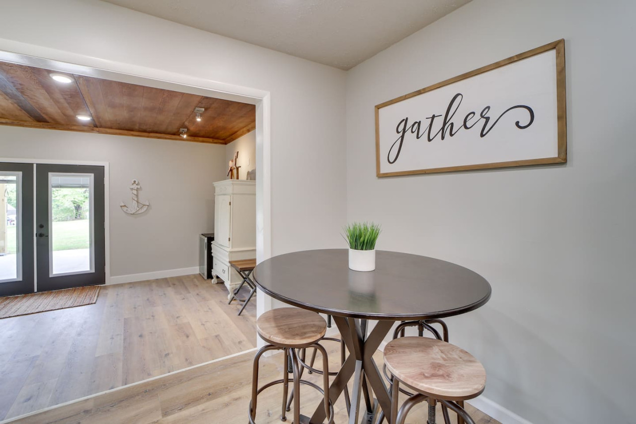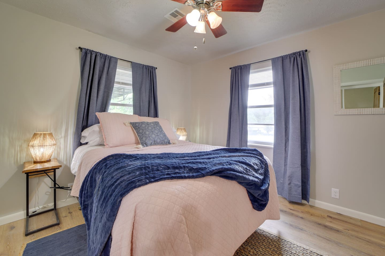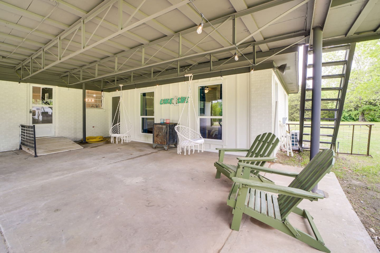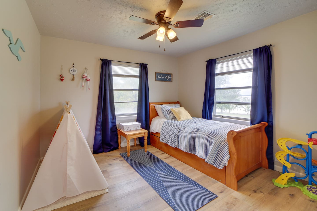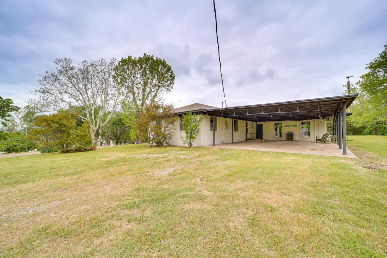 Escape to this updated, open-concept lake home just steps from the beach! With 4 bedrooms and 2 baths, this fully furnished retreat offers a cozy, inviting vibe perfect for families or groups, with beds for 10 people. Enjoy a spacious lot with plenty of room to relax, a covered outdoor space, and a fire pit for cozy evenings. Whether you're unwinding indoors or exploring the lake, this home is your ideal getaway. Book now for a memorable stay! to this great place with lots of room for fun. Welcome to your dream Lake Eufaula retreat! This beautifully updated, 2,700 sq. ft., open-concept home is thoughtfully designed to provide comfort, style, and all the essentials for a memorable stay. Nestled on a spacious lot with a convenient walking path leading to a sandy beach, it’s the perfect getaway for families, friends, or anyone looking to unwind by the lake. Step inside to a fully stocked kitchen with stainless steel appliances, cookware, and basic spices, making meal prep a breeze. The kitchen features a breakfast table with seating for four, a large island with seating for three, and a dining table that comfortably seats six. Whether you’re enjoying a hearty family meal, tackling a puzzle, or hosting a friendly card game, this dining area is a welcoming and versatile space. The home’s four bedrooms are designed for relaxation and convenience. The primary bedroom is a luxurious retreat, complete with a king bed, sleeper sofa, and Roku Smart TV. The attached upscale bath invites you to indulge in a long soak in the tub or refresh in the standalone shower. Two additional bedrooms each feature cozy queen beds, while the fourth bedroom offers trundle beds, creating the perfect space to entertain and accommodate kids. Outside, a spacious covered patio with a gable roof provides a cool and shaded oasis after a fun day on the water. Fire up the charcoal grill for a delicious BBQ or gather around the firepit to share stories and make s’mores under the stars. With its prime location, thoughtful amenities, and inviting design, this Lake Eufaula home is the perfect destination for making lasting memories. Book your stay today and start planning your ultimate lake escape! Guests will have full access to the entire property, including all indoor and outdoor spaces, except for one locked cleaning closet reserved for the property owner. This closet is not accessible during your stay to ensure privacy and security for both guests and the owner. We’re here to make your stay as enjoyable as possible! You can reach us anytime through the booking app, via phone, or by text—whichever is most convenient for you. We’re happy to assist with any questions or needs during your stay. Nestled on the north side of Lake Eufaula, this neighborhood offers the perfect blend of space and convenience. With large lots that are ideal for boat parking, it’s a fantastic spot for lake enthusiasts. Bring along your side-by-side or golf cart to explore the charming lakeside scenery at your leisure. The area is close to local favorites like The Barn and The Last Stop, where you can enjoy delicious meals and friendly vibes. Plus, downtown Eufaula is just a quick 10-minute drive away, offering a variety of shops, dining options, and amenities to complete your stay. Whether you’re here for the lake, the local culture, or just to relax, this neighborhood has it all!