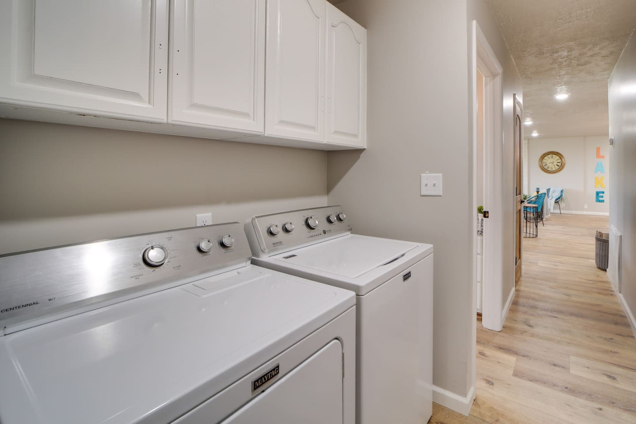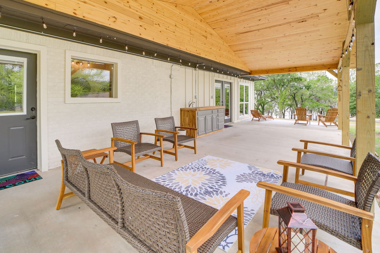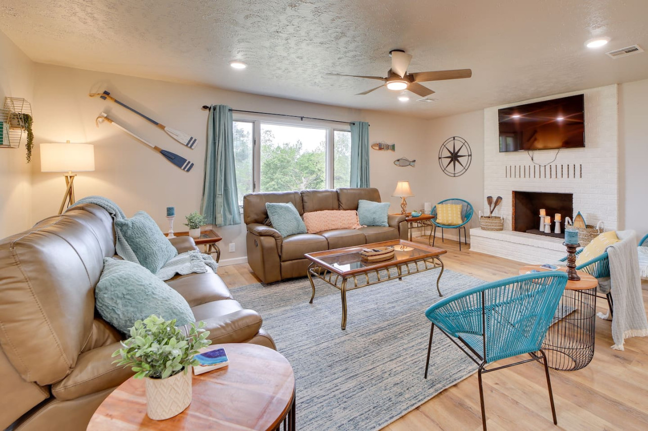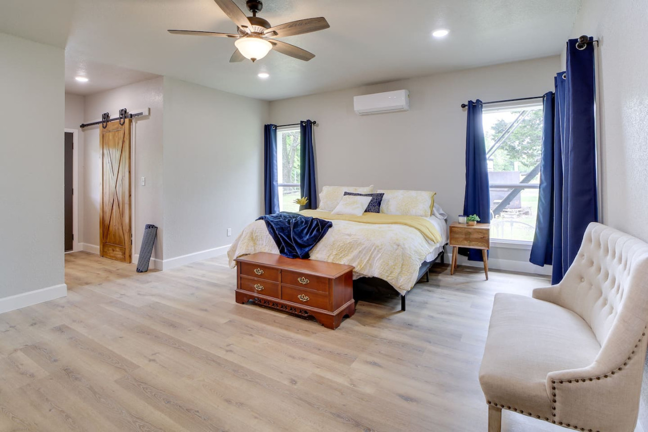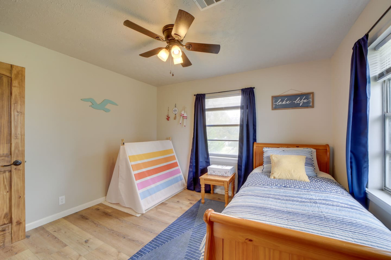 Escape to this updated, open-concept lake home just steps from the beach! With 4 bedrooms and 2 baths, this fully furnished retreat offers a cozy, inviting vibe perfect for families or groups, with beds for 10 people. Enjoy a spacious lot with plenty of room to relax, a covered outdoor space, and a fire pit for cozy evenings. Whether you're unwinding indoors or exploring the lake, this home is your ideal getaway. Book now for a memorable stay! to this great place with lots of room for fun. Welcome to your dream Lake Eufaula retreat! This beautifully updated, 2,700 sq. ft., open-concept home is thoughtfully designed to provide comfort, style, and all the essentials for a memorable stay. Nestled on a spacious lot with a convenient walking path leading to a sandy beach, it’s the perfect getaway for families, friends, or anyone looking to unwind by the lake. Step inside to a fully stocked kitchen with stainless steel appliances, cookware, and basic spices, making meal prep a breeze. The kitchen features a breakfast table with seating for four, a large island with seating for three, and a dining table that comfortably seats six. Whether you’re enjoying a hearty family meal, tackling a puzzle, or hosting a friendly card game, this dining area is a welcoming and versatile space. The home’s four bedrooms are designed for relaxation and convenience. The primary bedroom is a luxurious retreat, complete with a king bed, sleeper sofa, and Roku Smart TV. The attached upscale bath invites you to indulge in a long soak in the tub or refresh in the standalone shower. Two additional bedrooms each feature cozy queen beds, while the fourth bedroom offers trundle beds, creating the perfect space to entertain and accommodate kids. Outside, a spacious covered patio with a gable roof provides a cool and shaded oasis after a fun day on the water. Fire up the charcoal grill for a delicious BBQ or gather around the firepit to share stories and make s’mores under the stars. With its prime location, thoughtful amenities, and inviting design, this Lake Eufaula home is the perfect destination for making lasting memories. Book your stay today and start planning your ultimate lake escape! Guests will have full access to the entire property, including all indoor and outdoor spaces, except for one locked cleaning closet reserved for the property owner. This closet is not accessible during your stay to ensure privacy and security for both guests and the owner. We’re here to make your stay as enjoyable as possible! You can reach us anytime through the booking app, via phone, or by text—whichever is most convenient for you. We’re happy to assist with any questions or needs during your stay. Nestled on the north side of Lake Eufaula, this neighborhood offers the perfect blend of space and convenience. With large lots that are ideal for boat parking, it’s a fantastic spot for lake enthusiasts. Bring along your side-by-side or golf cart to explore the charming lakeside scenery at your leisure. The area is close to local favorites like The Barn and The Last Stop, where you can enjoy delicious meals and friendly vibes. Plus, downtown Eufaula is just a quick 10-minute drive away, offering a variety of shops, dining options, and amenities to complete your stay. Whether you’re here for the lake, the local culture, or just to relax, this neighborhood has it all!
