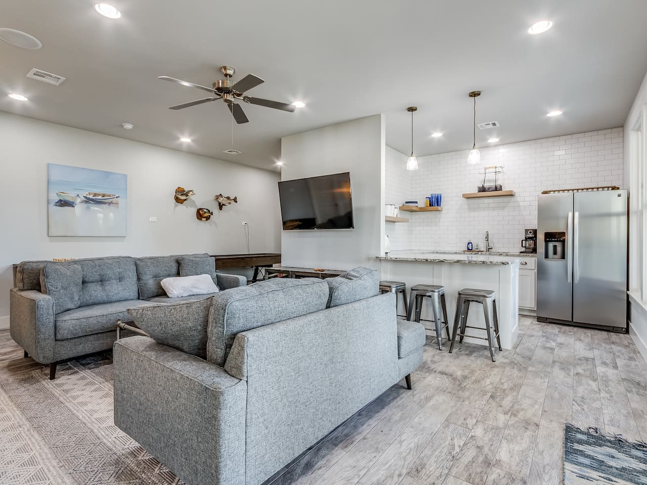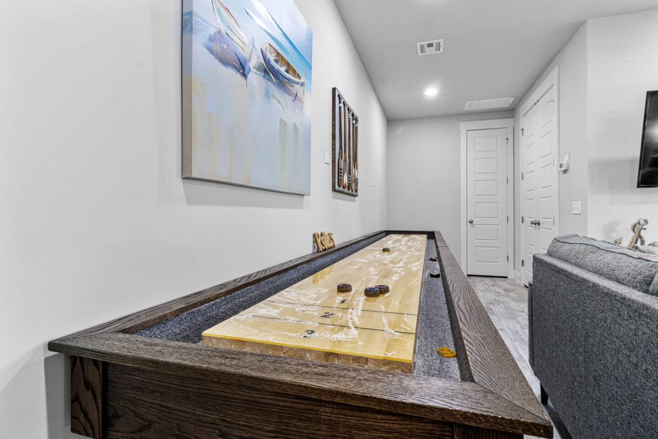 3-story retreat features 4 king rooms, including a primary suite w/ soaker tub & double showers. The lower level has 4 twin beds, kitchenette, Smart TV, shuffleboard, and patio with firepit & bbq grill. Multiple decks showcase Lake Eufaula sunsets. Carlton Landing offers pools, hot tub, courts, trails, parks, swim beach, Aqua Park, shops & dining. ***We also have another profile for this home that includes the garage apartment, allowing the property to sleep up to 18 guests in total.*** Main home (Sleeps 12) -Entry Level Open concept with a fully stocked kitchen (includes basic spices and oil), dining room with large table, and living room with Smart TV. Laundry room and half bath for convenience. King bedroom with private balcony and ensuite bath with shower only. Large balcony off the kitchen/dining/living area features a big table for gathering and enjoying evening meals with lake views. -Lower Level Perfect for kids or extra guests with 4 twin bunk beds, Smart TV, shuffleboard game, and kitchenette with fridge, sink, microwave, and toaster oven. Walk out to a covered patio overlooking the lake with access to the pellet grill and firepit for evening fun. -Upper Level Three king bedrooms, including the luxurious primary suite with Smart TV, spa bath with soaking tub and double showers, and a private balcony with panoramic lake views. The two additional bedrooms share a Jack-and-Jill bathroom with tub and shower, and one includes its own private balcony. ***We also have another profile for this home that includes the garage apartment, allowing the property to sleep up to 18 guests in total.*** If you're interested, here is that link airbnb.com/h/carltonlandingshoreenough Guests will have access to the entire main home, with the exception of a locked cleaning closet on the lower level. This lovely home provides guests with convenient, comfortable self-check-in. We are just a phone call, text, or message away, always available to ensure that your stay is as enjoyable and stress-free as possible. Come and stay with us to experience comfortable accommodation, perfect for your short term stay. Parking available for up to 7 cars. ****Please note: some amenities are seasonal, and availability is managed by Carlton Landing. We are not responsible for closures or schedule changes.****